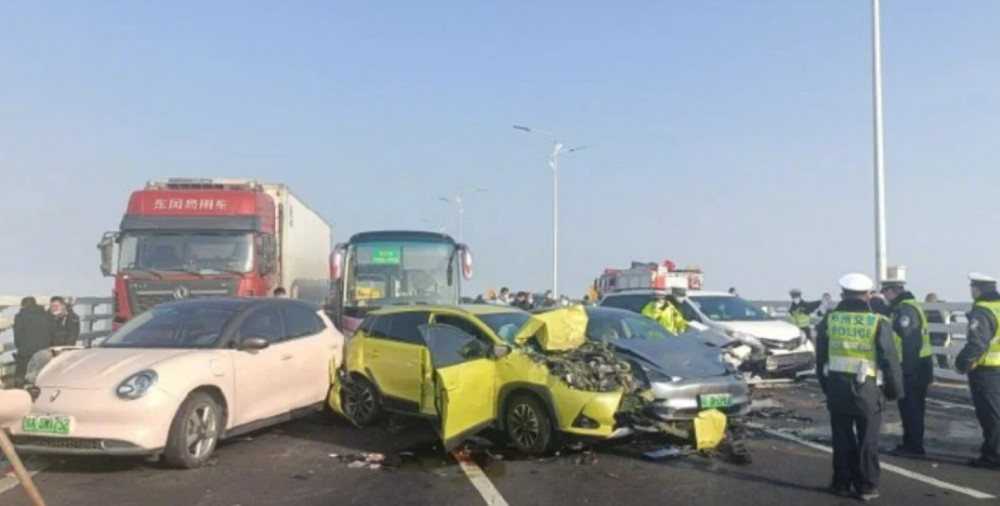 Potrivit echipelor de intervenție, accidentul a avut loc din cauza ceții dense. Astfel, mai multe autoturisme şi camioane avariate, au fost îngrămădite unul peste cealălt pe podul Zhengxin Huanghe. Iar una dintre maşini era strivită în mijlocul altor vehicule.