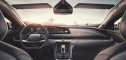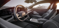 La capitolul interior, vehiculul pur electric se laudă cu un display 5k uriaș de tocmai 34 de inch, dar și un ecran touch retractabil, destinat șoferului pentru operarea anumitor funcții. O mare parte dintre funcții pot fi gestionate și prin asistentul vocal Alexa dezvoltat de Amazon.