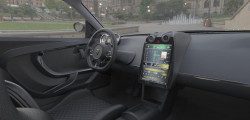 La interior se pot acomoda două persoane, iar planșa de bord implică un display de 15.9 inch pentru sistemul multimedia. Șasiul este fabricat din aluminiu, la care sunt atașate panourile de caroserie din fibră de sticlă. Jantele au un diameru de 18 inch, iar caroseria poate fi finisată în una dintre șapte culori disponibile.