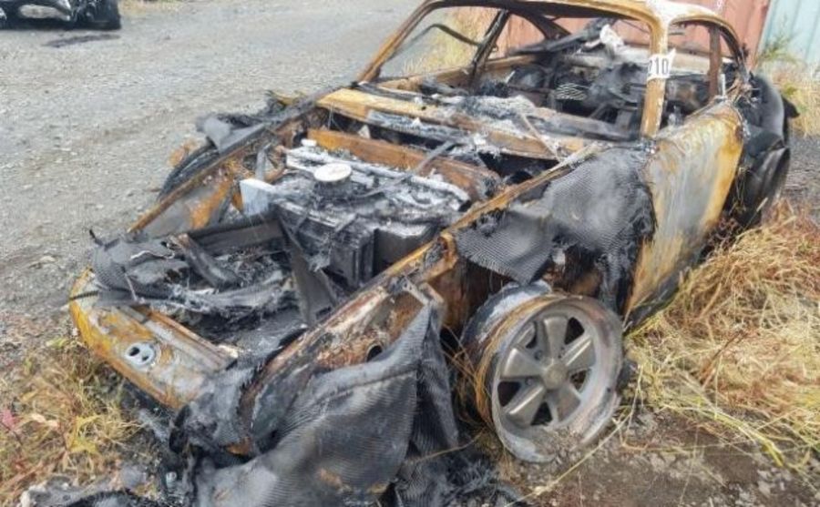 Al doilea exemplar este un Porsche 911 Carrera 2 tunat de atelierul Singer Vehicle Design. Tunerii modifică vechile 911 în caroseria 964 contra sumei de circa 300.000 de dolari. Exemplarul care a suferit incendiul costă acum doar 2.100 de dolari, ce a rămas din el vedeți în poză.