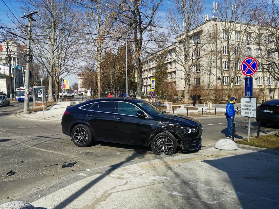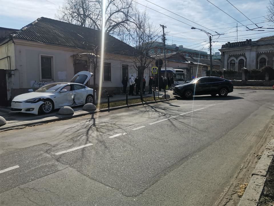 Astăzi, la intersecţia străzilor Alexei Mateevici şi Aleksandr Puşkin din Chişinău a avut loc un accident rutier cu implicarea unei Tesla Model S şi unui Mercedes-Benz GLE Coupe.
