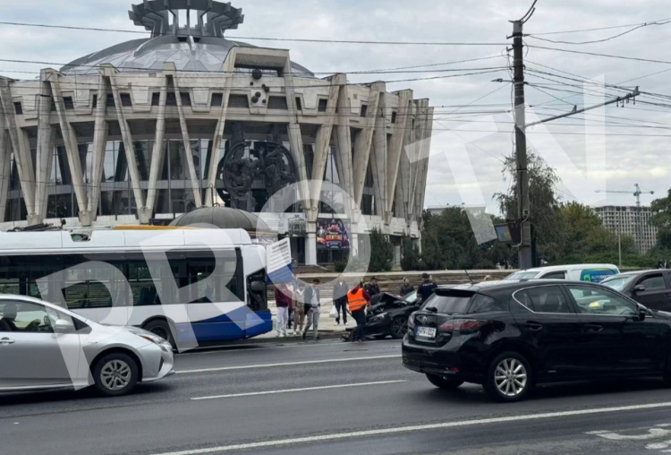 Accident cu implicarea unui troleibuz, care staționa regulamentar. Șoferul unui Mercedes se face vinovat