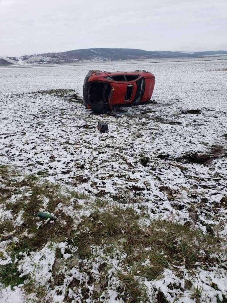 Accident grav la Basarabeasca! Două persoane au fost spitalizate, după ce mașina în care se aflau a derapat și s-a inversat