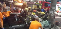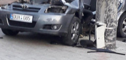 Accident șocant în centrul capitalei! Trei tineri au fost internați de urgență după ce au ajuns cu mașina într-un stâlp