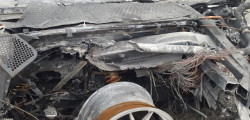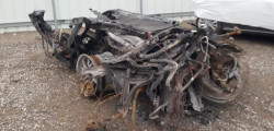 Pe site se menționează că supercarul american a avut de suferit în urma unui incendiu. Ceea ce vedem în imagini pare a fi partea posterioară, care a păstrat careva elemente ale motorului, jantele și alte piese din metal care din cauză că au fost grav afectate de foc sunt greu de recunoscut.