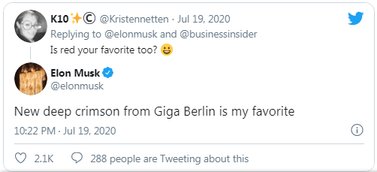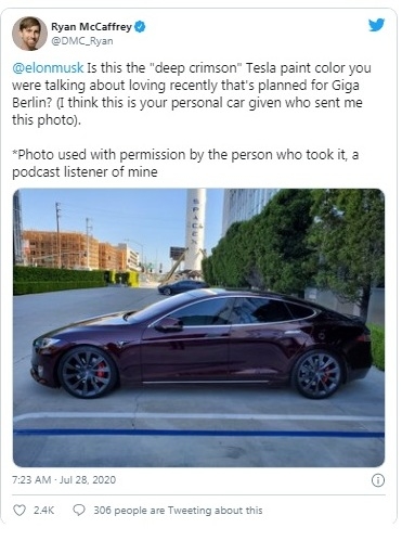 Cum s-a ajuns la o așa concluzie? Aceasta a fost observată într-o parcare destinată exclusiv conducerii Tesla, iar culoarea în care e realizată pare-se a fi un vișiniu închis, aproape stacojiu. Într-o postare pe Twitter, ce avea legătură cu inaugurarea celei mai avansate secții de vopsitorie din cadrul Gigafactory Berlin, Musk a admis că anume această culoare e preferata sa.