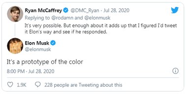 Aceasta se consideră a fi mașina personală a lui Elon Musk. Exemplarul este realizat într-o nuanță exclusivă
