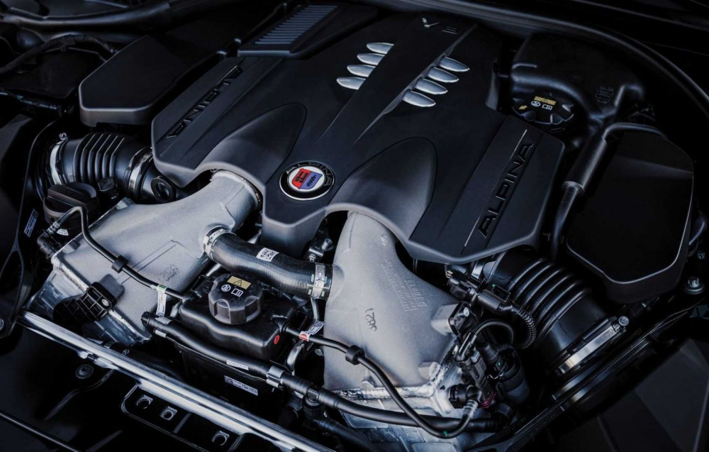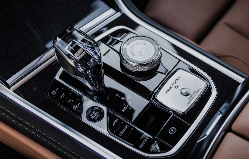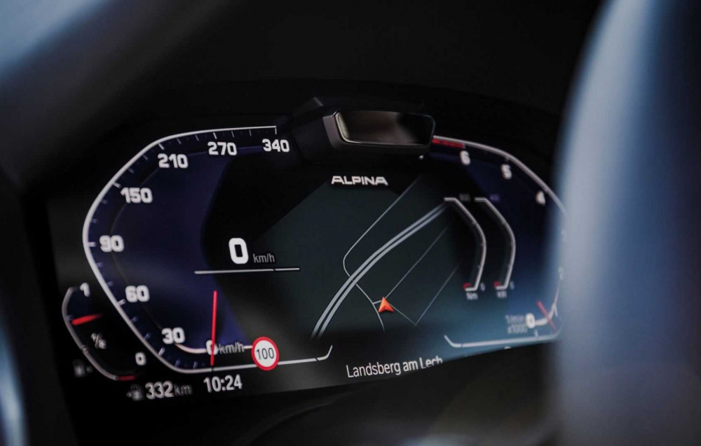 Pe interior, pasagerii vor regăsi la interior o serie de elemente pe care este gravată emblema Alpina, aceeași care poate fi întâlnită și la nivelul ornamentelor iluminate ale pragurilor. Volanul este îmbrăcat în piele naturală, cusută manual. Iar bordul digital are acum un display de 12.3 inch.