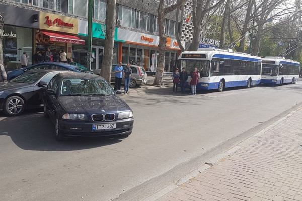 Cine a circulat ieri prin oraş şi a traversat şi strada Puşkin din capitală pe la orele 16 cu siguranţă că a văzut o coloană de troleibuze şi un BMW "parcat" perpendicular pe şosea. Ei bine, iată cum a ajuns el acolo.