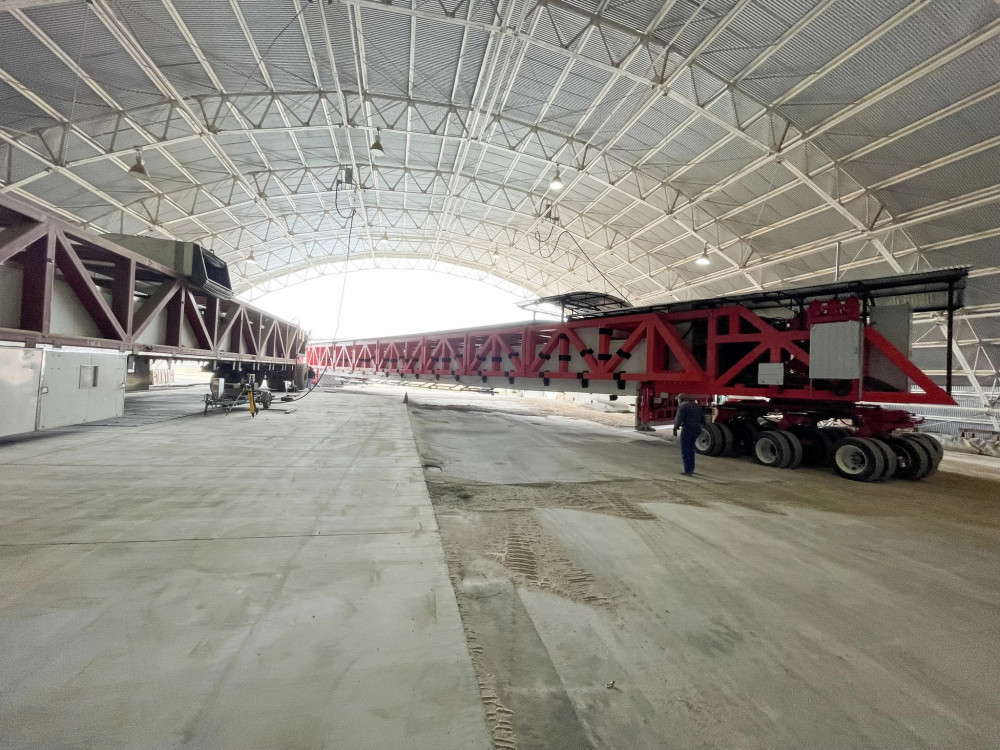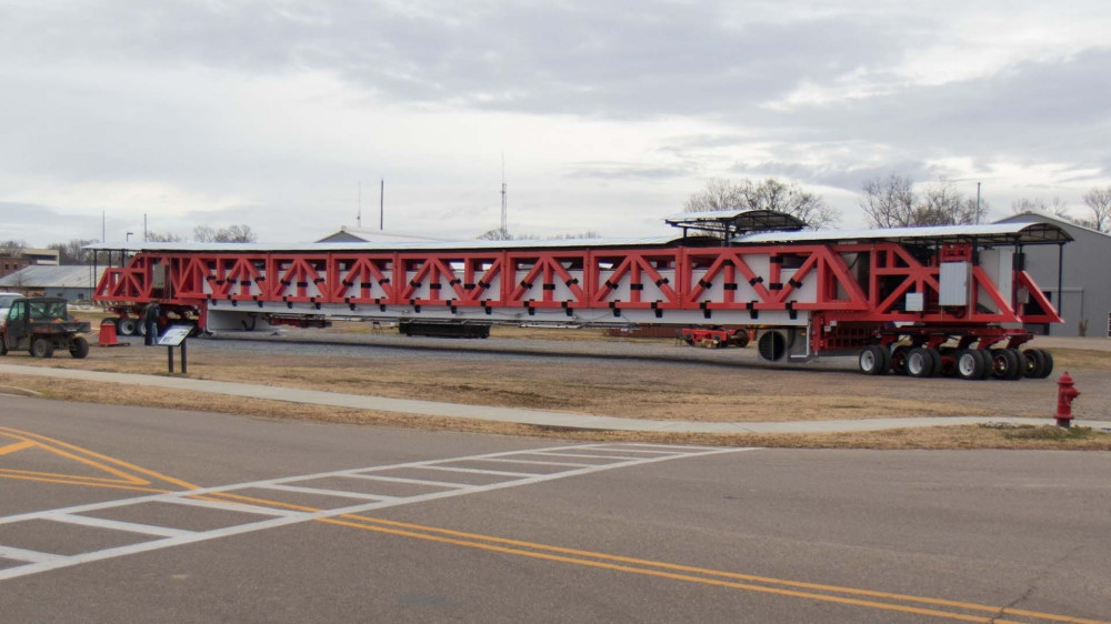 Este cel mai mare dispozitiv de acest gen din lume! Lungimea sa este de aproape 45 de metri, înălțimea de 4 metri, iar lățimea de 4.5 metri! În același timp, greutatea ajunge la 120 de tone.