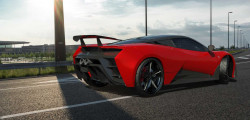 O serie de randări ale supercarului au fost publicate în care este vizualizat aspectul exterior al acestuia. Caroseria se vrea a fi realizată din fibră de carbon practic în totalitate. Elementele aerodinamice includ un difuzor frontal proeminent, dar și o aripă spate de mari dimensiuni. Două terminații ale eșapamentului sunt integrate în imagini într-un singur bloc, poziționat pe mijloc.