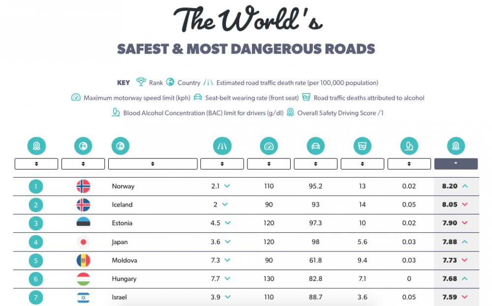 În această ordine de idei, Moldova reușește să primească scorul final de 7.73 puncte, ceea ce o clasează pe locul 5 în topul celor mai sigure țări pentru șofat!