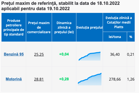 Astfel, benzina se va scumpi cu 4 bani și va ajunge să coste cel mult 25.25 lei per litru, în timp ce motorina adaugă la cost încă 28 de bani și se va comercializa la stațiile de alimentare cu maxim 28.81 lei per litru!