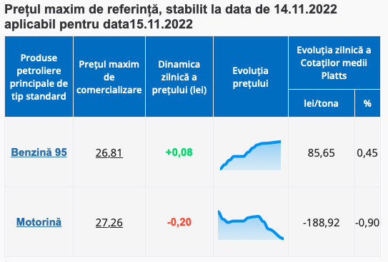 Așadar, benzina va fi mâine mai scumpă cu 8 bani și va avea un preț maxim de 26.81 lei per litru, în timp ce motorina se ieftinește cu 20 de bani și se va comercializa cu cel mult 27.26 lei per litru!