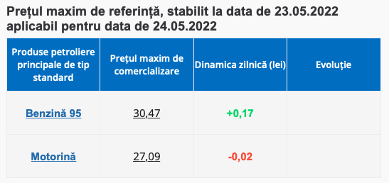 Așadar, proprietarii mașinilor cu motoare pe benzină vor alimenta cu 17 bani mai scump, maxim 30.47 lei. În același timp, prețul la motorină scade cu 2 bani și ajunge să fie de cel mult 27.09 lei.