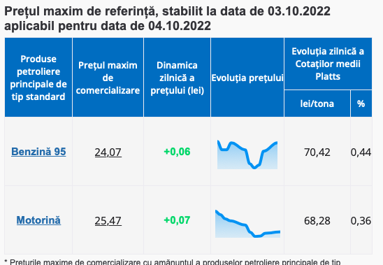 Ziua de mâine nu este o excepție. Agenția anunță pentru data de 4 septembrie, o scumpire a benzinei cu 6 bani, care ajunge să coste cel mult 24.07 lei per litru, în timp ce motorina adaugă la cost 7 bani și se va comercializa nu mai scump de 25.47 lei per litru.