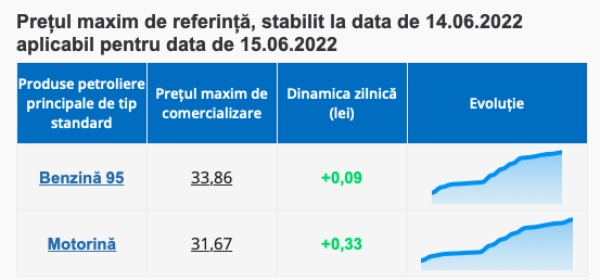 Așadar, benzina se scumpește cu 9 bani și va costa 33.86 lei, în timp ce motorina adaugă la preț 33 de bani și se va comercializa cu cel mult 31.76 lei!