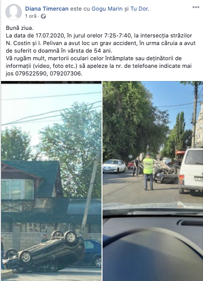 În această ordine de idei, martorii accidentului, care dețin imagini foto sau video, sunt rugați să apeleze la numărul de telefon 079522590 sau 079207306!