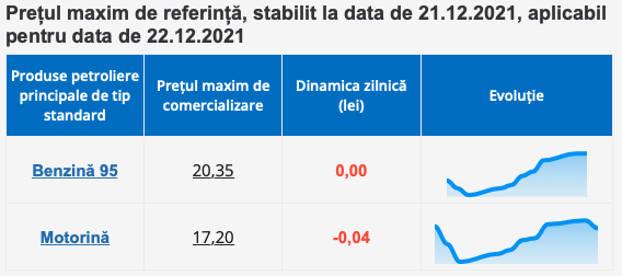 Astăzi, ANRE anunță noile prețuri plafon. Astfel, prețul benzinei rămâne neschimbat de 20.35 lei, în timp ce motorina se ieftinește cu 4 bani și se va comercializa la stațiile PECO cu maxim 17.20 lei.