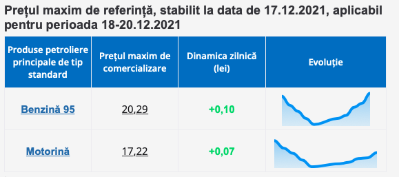 Astfel, pentru perioada 17-20 decembrie, Agenția indică un preț plafon pentru benzină care crește cu tocmai 10 bani și atinge pragul de 20.29 lei! În același timp, motorina adaugă la preț 7 bani și se va vinde la stațiile de alimentare cu 17.22 lei.