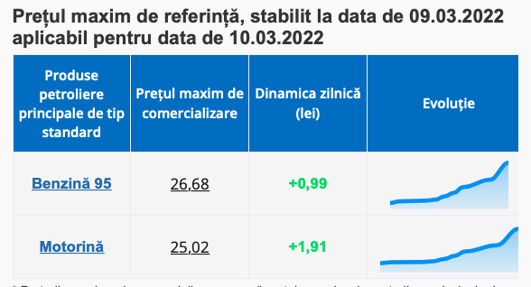 Astfel, avem un nou record de scumpire și preț de până acum. Benzina standard adaugă la cost 99 de bani și se va comercializa cu maxim 26.68 lei, în timp ce motorina se scupește cu tocmai 1.91 lei, ajungând să coste 25.02 lei!