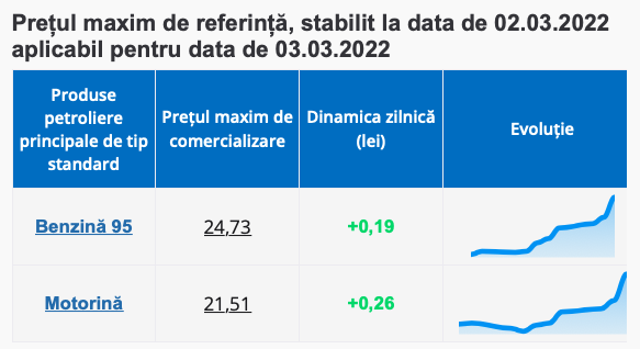 ANRE a publicat câteva minute în urmă prețurile plafon la principalelel tipuri de carburanți, valabile pentru ziua de mâine 3 martie.