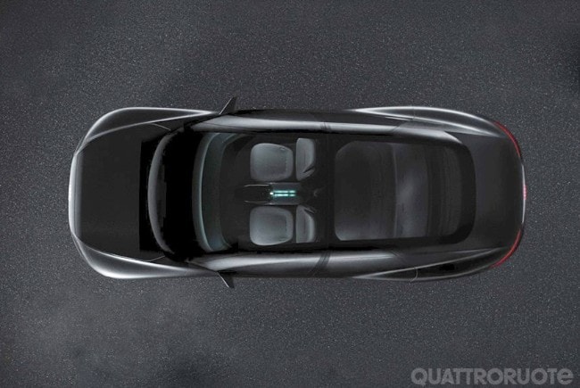 Imaginile arată mașina văzută de sus și dezvăluie formula aleasă pentru concept: proporțiile sunt cele ale unui sedan cu patru locuri, cu aripi mari rotunjite care ies din habitaclu. În plus, coada conică este mai lungă decât fața și dă viață proporțiilor, care sugerează un proiect născut în jurul habitaclului și apoi extins spre exterior. Această nouă abordare, care este profund diferită de cea tradițională, este posibilă datorită platformei electrice și prezenței unor sisteme avansate de conducere asistată, care au făcut posibilă remodelarea completă a vieții la bordul mașinii.