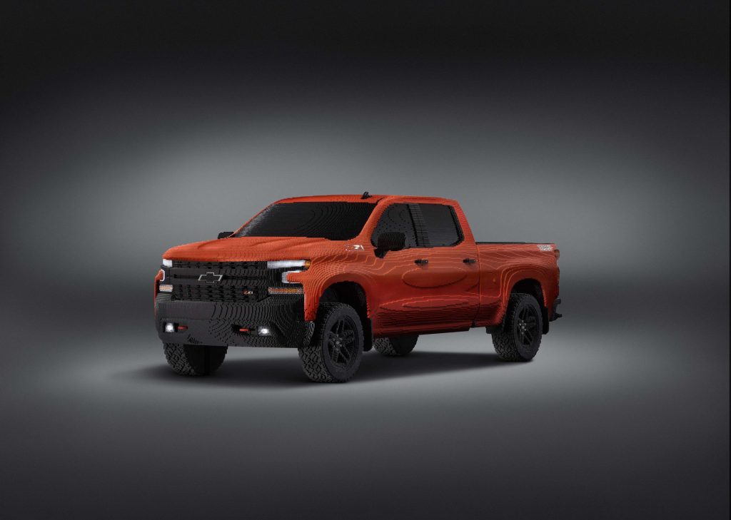 Cel mai nou model de Chevrolet Silverado, 1500 LT Trail Boss, a fost replicat la scară mare, cu ajutorul pieselor de LEGO.
