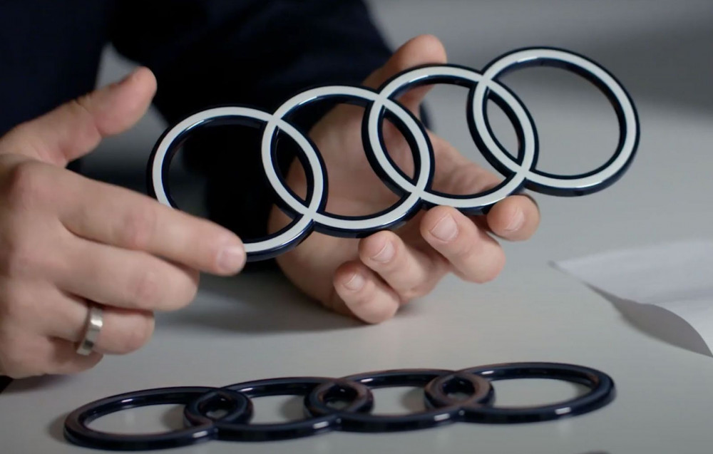 Designerul Andre Georgi susține că noul logo este mult mai modern decât precedentul. În continuare regăsim cele patru inele, care apropo au fost introduse încă în 1932. Doar că, de această dată inelele sunt "montate" pe un fundal negru, în timp ce inelele sunt albe. Însă clienții pot opta și pentru o nuanță gri închis a inelelor, pe același fundal negru. Iar din motive de sustenabilitate, Audi a renunțat de la aplicarea cromului pe logo.