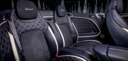 Interiorul inspiră rafinament, volanul este finisat în Alcantara, iar tapiseria combină elemente de piele și Alcantara. Clienții pot alege dintre 15 nuanțe principale și 11 secundare pentru a-și decora interiorul după bunul plac. Furnirul Piano Black vine standard în Speed, cu opțiuni ca Crown Cut, Dark Stain Burr Walnut și Dark Fiddleback Eucalyptus oferite fără costuri suplimentare. Alte trei opțiuni unice sunt disponibile. Scaunele sunt prevăzute și cu un încălzitor pentru gât, optimizând eficiența și fluxul de aer în jurul tetierelor reglabile electric. Volanul și cotiera dispun, de asemenea, de funcții de încălzire.