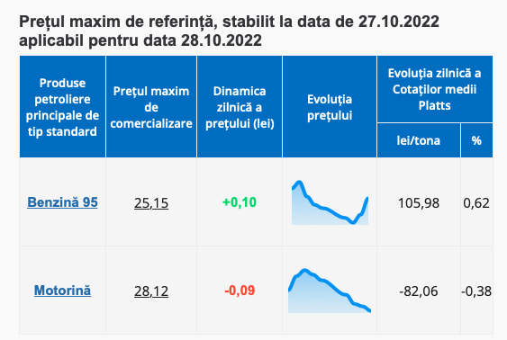 Mai exact, de la miezul nopții, prețul benzinei va crește cu 10 bani și va fi de maxim 25.15 per litru, în timp ce costul motorinei scade cu 9 bani și va fi de cel mult 28.12 lei per litru!