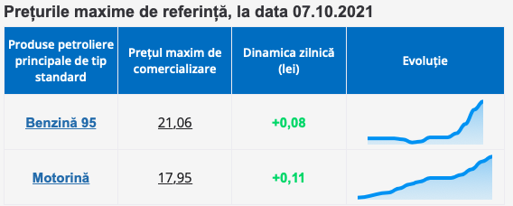 În această ordine de idei, benzina standard se scumpește cu 8 bani per litru și ajunge să coste 21.06 lei, adică peste un euro! Motorina se scumpește cu încă 11 bani și costă 17.95 lei.