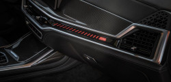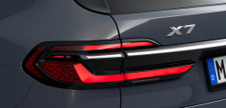 După cum spuneam, noua versiune a SUV-ului poate comandată și cu grila iluminată. Aceasta nu are decât să ofere o imagine spectaculoasă pentru partea frontală a mașinii. Iconic Glow va putea fi regăsită în echiparea standart în cazul versiunii BMW X7 M60i xDrive şi va fi oferită ca opţiune pentru celelalte variante de model. Despre stopuri, acestea au o sculptură tridimensională. Acestea sunt conectate printr-o bară cromată elegantă.