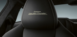 La capitolul interior, ediția Golden Thunder oferă o tapțierie din gama BMW Individual din Merino și un plafon acoperit cu Alcantara. Tunelul median integrează elegant elemente aurii și din aluminiu, iar pe tetiere este brodat numele ediției speciale. Standard, fiecare exemplar din seria Golden Thunder va fi echipat cu pachetul CratedClarity cu sticlă finisată atent pentru butonul de pornire și pentru selectorul de viteze, dar și cu sistemul audio Bowers & Wilkins Diamond Surround.