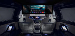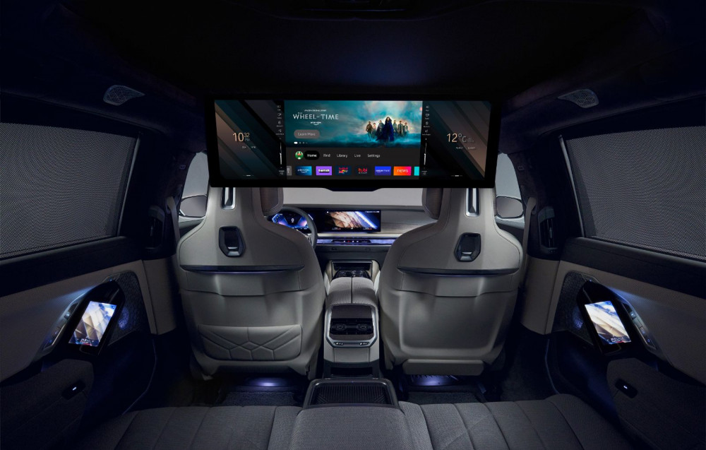 Pentru prima dată, pasagerii din față vor avea posibilitatea de a accesa materiale video de pe YouTube. În același timp, cei din spate vor fi răsfățați cu noul ecran BMW Theatre Screen, cu o diagonală de 31.3 inch, rezoluție 8K și Amazon Fire TV integrat. Acesta coboară din plafon și transformă noul Seria 7 într-o cinema pe roți. La fel, portierele din spate integrează două display-uri de 5.5 inch prin intermediul cărora pasagerii pot interacționa cu diversele funcții ale mașinii.