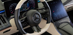 La interior desigur sunt oferite noi tapițerii din piele, cusături contrastante, ornamente din carbon și elemente care accentuează că în fața noastră se află un S-Class special.