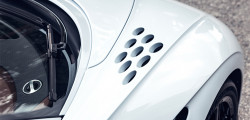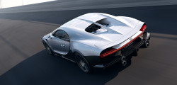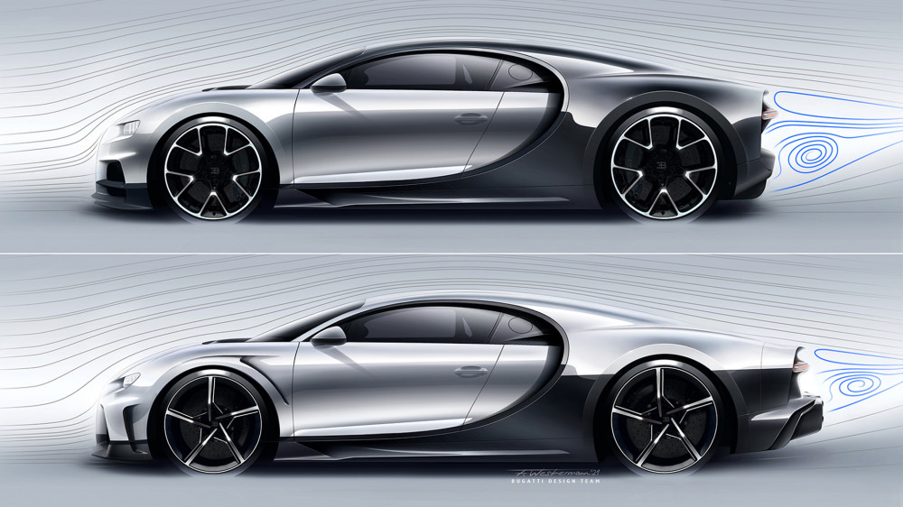 În acest context, Bugatti a alungit partea din spate cu 25 cm pentru a îmbunătăți trecerea curenților de aer și a optimiza coeficientul aerodinamic general. Constructorul menționează că unele elemente aerodinamice au fost împrumutate de pe legendarul Bugatti EB110 Super Sport.