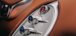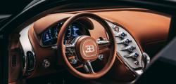 Habitaclul urmează fidel filosofia Veyron-ului original. Volanul rotund, comenzile simple și inserțiile din aluminiu creează o atmosferă analogică, într-o epocă dominată de ecrane. Piesa centrală este însă un ceas Audemars Piguet Royal Oak Tourbillon, cu diametrul de 41 mm, integrat elegant în bord, un detaliu care transformă interiorul într-un spațiu demn de un muzeu auto.