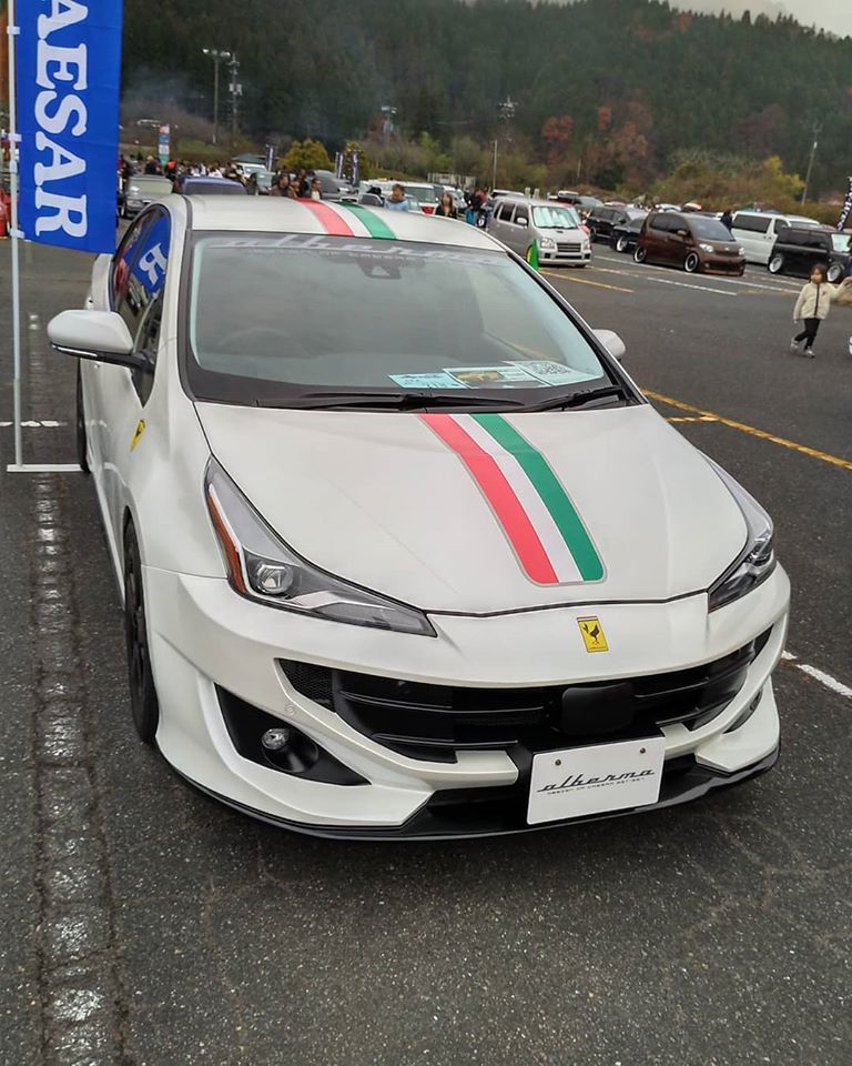 Albermo. Așa se numește atelierul de tuning care s-a inspirat de la Ferrari FF pentru a proiecta un bodykit sport pentru Toyota Prius de generația a patra. L-au numit SP42 și nu are foarte multe componente incluse, decât bara față, difuzorul din bara spate și emblemele cu galben, dar fără căluțul cabrat din interior. Desigur, tricolorul de pe capotă it's a must!