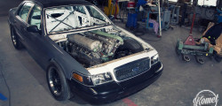 De departea cea mai proaspătă noutate din lumea tuningului, este acest Ford Crown Victoria care s-a împrietenit recent cu un motor de tanc. Speram să fie și ceva update-uri, dar proiectul care și așa durează cam mult, nu s-a mișcat foarte departe, astfel că îl publicăm așa cum a fost prezentat.