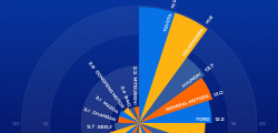Pe locul doi, la distanță foarte scurtă vine Grupul Volkswagen cu 10.3 milioane de mașini produse anual, iar pe locul trei este deja Hyundai Motor Company (Hyundai și KIA) cu 7.2 milioane automobile, sau 13.7 mașini pe minut.