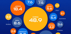 Însă pe lângă clasamentul producătorilor auto, mai există și un top al țărilor, în care sunt produse cele mai multe mașini, iar aici China este lider - 48.9 mașini/minut (25.700.000 anual), urmată de SUA cu 20.7 mașini pe minut, Japonia (18,4) și Germania (8,9 mașini/min).