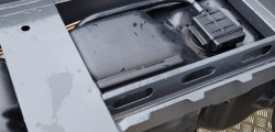 Desigur că ei nu s-au limitat doar la propulsor. A fost schimbată și transmisia. Acum, Mercedes-ul are o cutie de viteze de tip ZF 8HP, automată cu opt rapoarte. Din cele scrise de reprezentanții atelierului, meșterii au avut nevoie de mai multe piese adaptoare, într-u cât este vorba de două mărci total diferite. Din nefericire, nu avem mai multe detalii de ordin tehnic și mai multe informații despre modul în care au fost relizate lucrările.