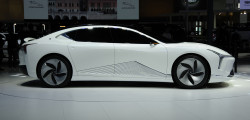 Partea laterală a vehiculului electric este definită de linii suple, menite să îmbunătățească aspectul și indicii aerodinamici. Urmează o tendință destul de des întâlnită în cadrul conceptelor moderne: oglinzile retrovizoare sunt înlocuite de camere cu unghi înalt de acoperire.