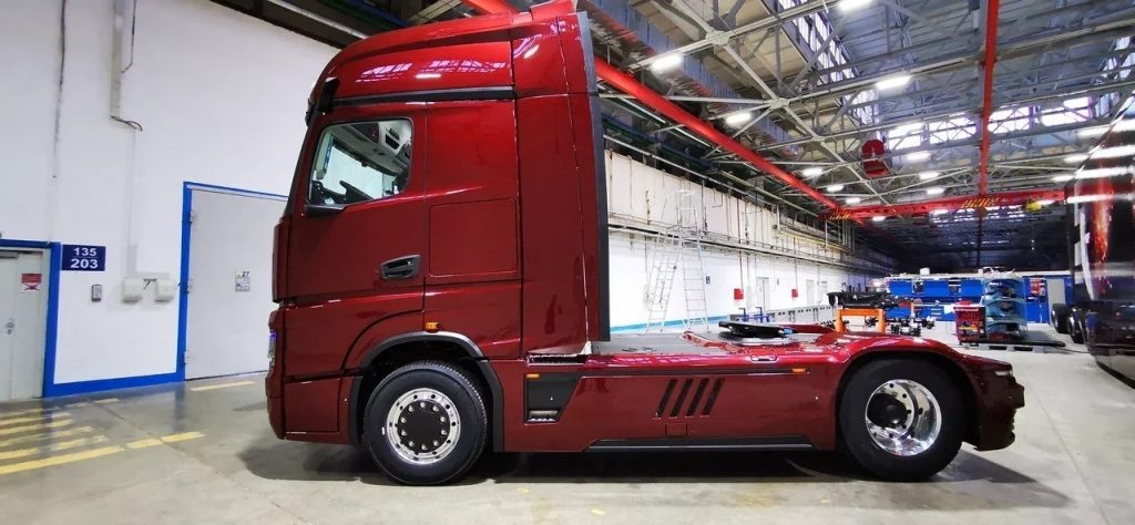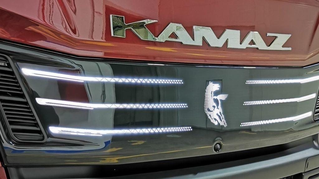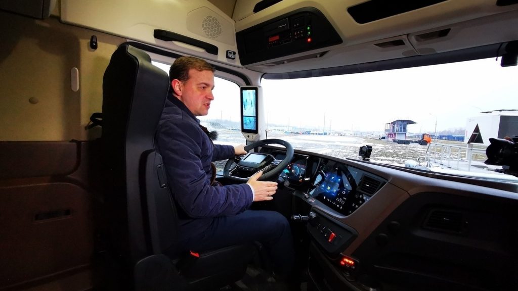 Dar să le luăm pe rând. Mândria noului KamAZ, cabina de 2.5 metri lățime și 2 metri înălțime, îmbrăcată în elemente aerodinamice și care promite să ofere cel mai luxos și mai confortabil mediu de lucru pentru cei aflați la volan.