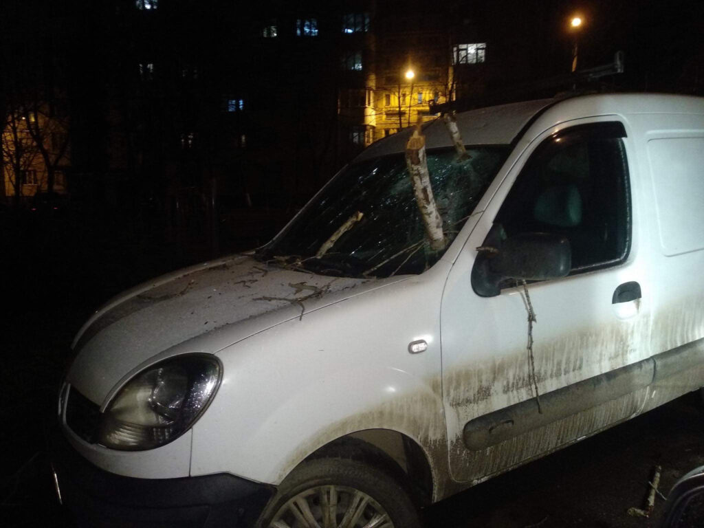 Crengile desprinse de copaci, dar și alte obiecte zburătoare au aterizat pe mașinile parcate sub cerul liber din capitală, provocând daune materiale considerabile. Pe lângă zgârâieturi și tabla înfundată, au sărit și cioburi de sticlă de la parbrizele sparte.