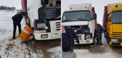 "За час к дальнобойщику подъехали десятки машин, у него теперь целая кабина продуктов. Продукты больше не нужны! Привезли также газовую горелку. По ремонту машины предварительно установили, что выполнить его на месте своими силами невозможно. Примерно через час-полтора молдаванина Андрея заберет к себе домой житель Слуцка. Номер телефона этого человека для связи по разным вопросам нам сообщат чуть позже. Всем огромное спасибо за участие!"