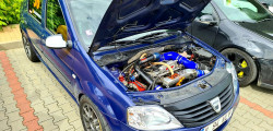 Este o Dacia Logan, dotată cu motor aspirat turbo de 1.8 litri volum, care dezvoltă tocmai 457 CP! Trebuie de menționat că automobilul are la bază și tracțiune integrală de tip Haldex. Motorul a fost instalat de pe un model marca Volkswagen, etrierele marca Alfa Romeo, între timp ce alte piese au fost instalate de pe Audi.