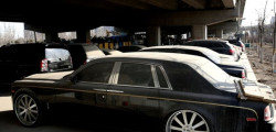 Și în China există parcări cu mașini scumpe abandonate, dintre care una este situată direct sub un pod din Beijing. Aici vedem o adevărată colecție de mașini exotice, printre care: Rolls-Royce, Bentley, Range Rover și un Lamborghini colantat în folie aurie.
