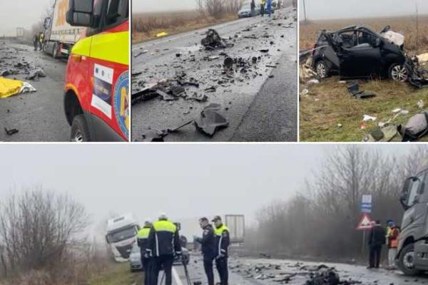 Depășire fatală pe un drum din România, soldată cu 7 morți. Un microbuz a fost spulberat între o cisternă și un TIR
